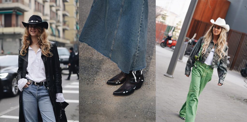 Čini se da zapadnjački trend ostaje, ali ovaj put s preokretom. Očekujte robusnu radnu odjeću koju nudi Zalando kombiniranu sa šljokicama, majice u stilu devedesetih uparene s Levisom i kaubojske šešire kao glavni dodatak sezone, kako je već prikazano na ulicama Pariza i Milana.
